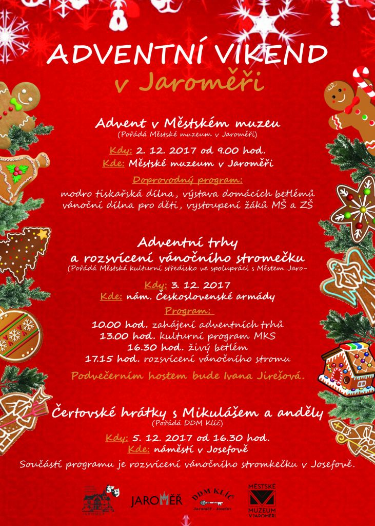 Advent v Městském muzeum (2.12.2017) Adventní trhy a rozsvícení vánočního stromečku (3.12.2017) Čertovské hrátky s Mikulášem a anděly (5.12.2017)
