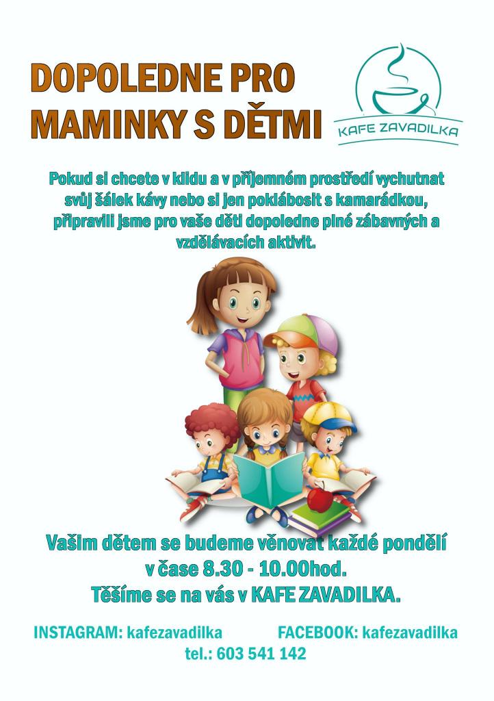 Od 8.1.2024 budou v Kafe Zavadilka KAŽDÉ PONDĚLÍ probíhat v čase od 8.30 do 10.00hod. AKTIVITY pro vaše malá zlatíčka. Vašim dětem se budeme plně věnovat, abyste si v klidu vychutnaly svou ranní kávu, popřípadě snídani.