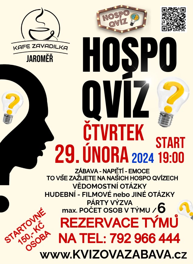 1) HOSPO QVÍZ - KAFE ZAVADILKA JAROMĚŘ / REZERVACE TÝMŮ / VÝSLEDKY | Facebook
