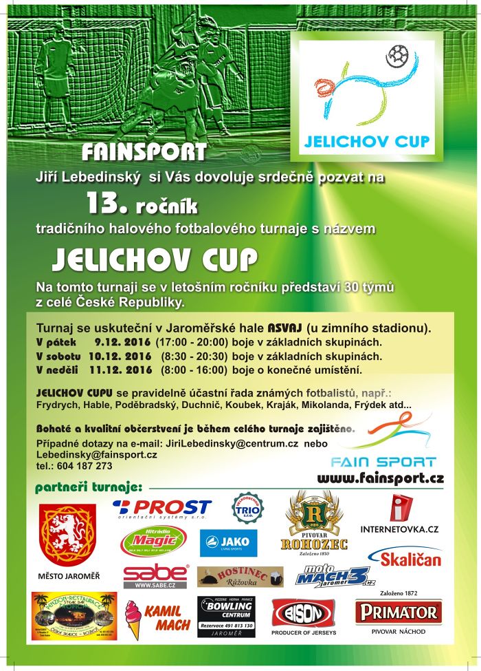 13. ročník tradičního halového fotbalového turnaje, představí se 30 týmů z celé České republiky.