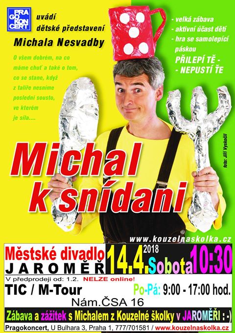 V sobotu 14. dubna se v Městském divadle v Jaroměři koná představení: Kouzelná školka - Michal k snídani Začátek v: 10:30 hodin