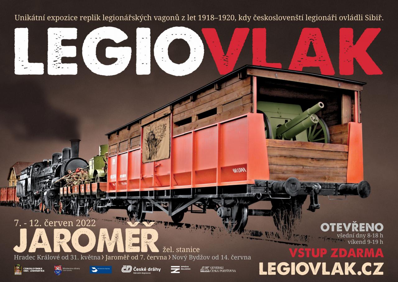 Již za několik týdnů dorazí do Jaroměře naše pojízdné muzeum Legiovlak, unikátní souprava 14 zrekonstruovaných vozů, představující věrnou repliku legionářského vlaku, v němž žili a bojovali příslušníci naší zahraniční armády v Rusku v letech 1918–1920. Koleje České republiky brázdí s pojízdným muzeum již osmým rokem a jeho cílem je připomenutí nejen zásadní historické zásluhy československých legionářů na vzniku našeho státu, ale nově také připomínka boje Čechů a Slováků po boku Spojenců ve 2. světové válce, stejně jako současná úloha Armády České republiky doma i v zahraničních operacích, a to převážně u mladé generace.