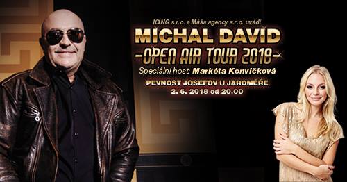Michal David zavítá v rámci svého letního turné do Josefova u Jaroměře. Exkluzivním hostem koncertu bude zpěvačka Markéta Konvičková. Vstupenky v síti Ticketportal