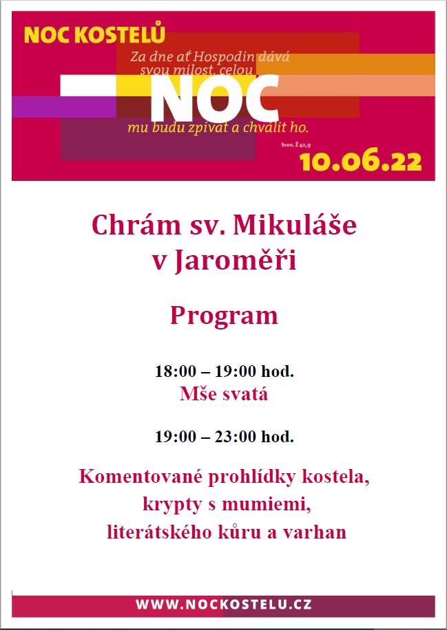 Noc kostelů v Jaroměři - Chrám sv. Mikuláše v Jaroměři, ostel Nanebevstoupení Páně v Josefově, Kostel Českobratrské církve evangelické v Semonicíh