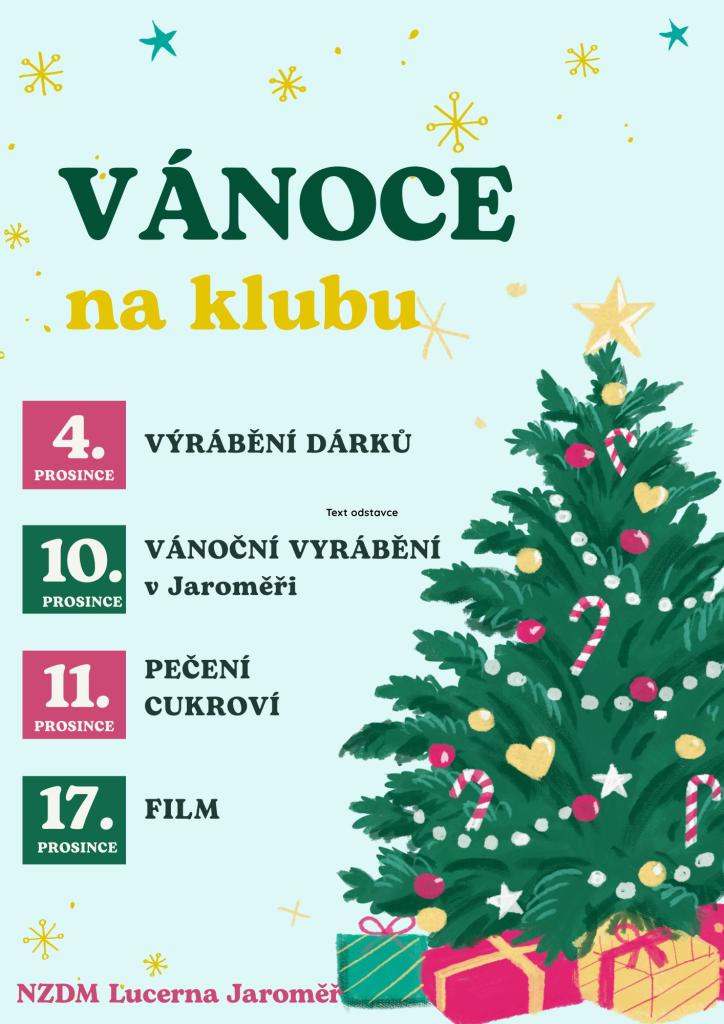 Zveme vás na vánoční vyrábění dárků, pečení a promítání filmu. Tato akce je určena pro všechny děti od 7-21, kteří chtějí kreativně trávit čas a připravit si vlastní dárky. Přijďte se inspirovat a užít si předvánoční atmosféru.