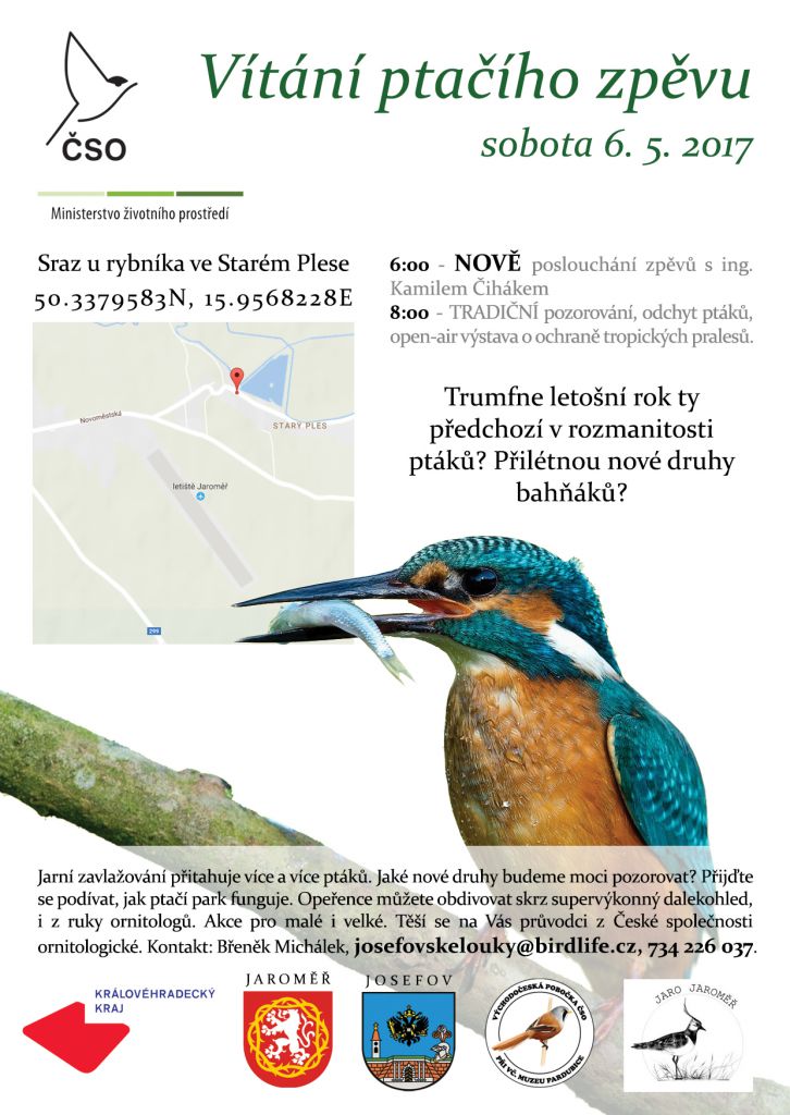 sobota 6. 5. 2017 od 6:00 poslouchání zpěvů a od 8:00 pozorování a odchyt ptáků,