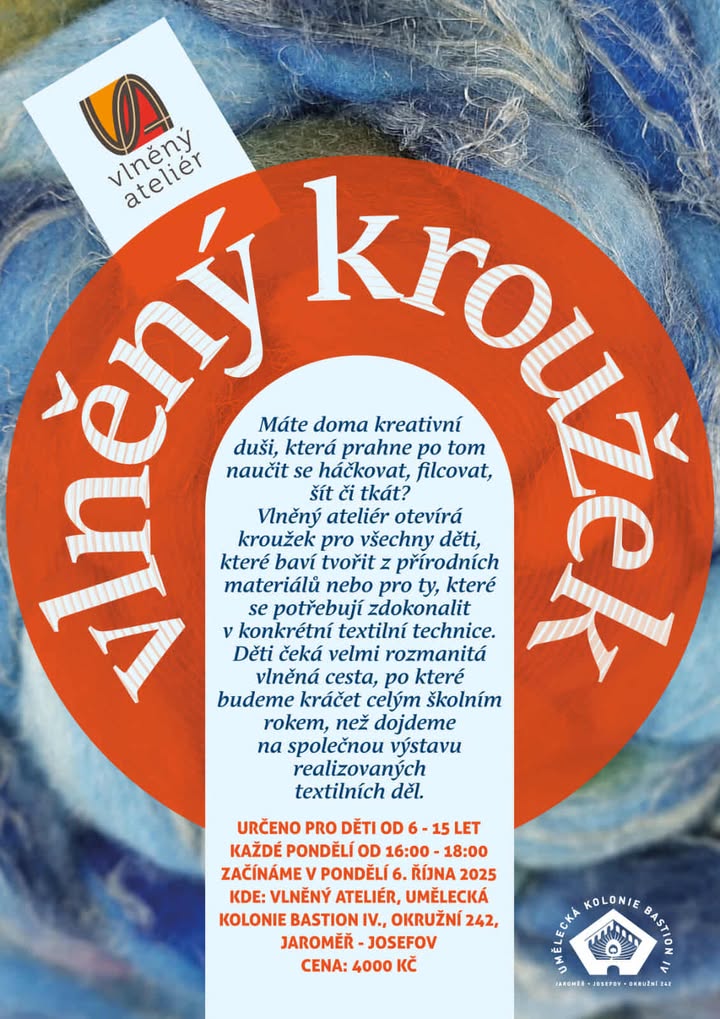 Vlněný ateliér otevírá kroužek pro všechny mladé lidi, kteří mají zájem naučit se různé textilní techniky jako háčkování, filcování, šití a tkaní. Během celého školního roku se účastníci mohou těšit na rozmanité projekty, které je provedou světem kreativního tvoření z přírodních materiálů.