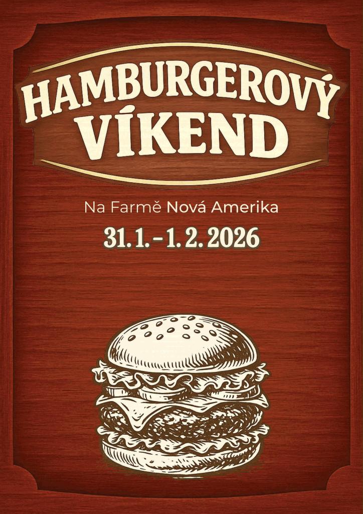 Na Farmě Nová Amerika se uskuteční Hamburgerový víkend ve dnech 31. ledna a 1. února 2026. Přijďte si vychutnat šťavnaté hamburgery a strávit příjemné chvíle.