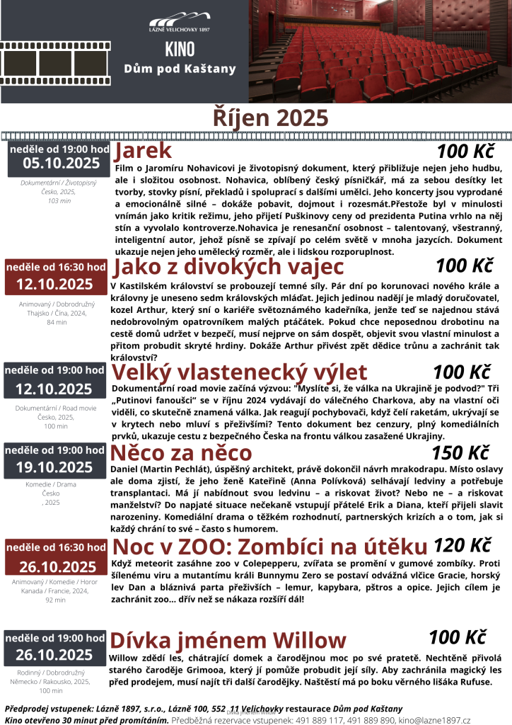 Kde: Kino Dům pod Kaštany, Lázně Velichovky